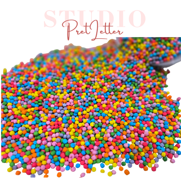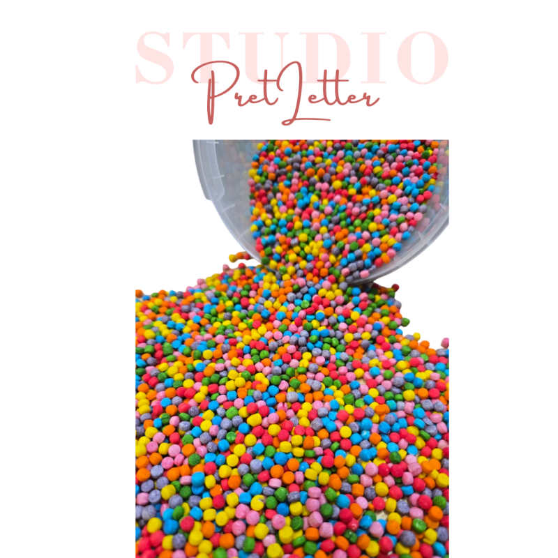 Met deze speelparels kunnen kinderen eindeloos scheppen, gieten en ontdekken in een speelbak. De vrolijke regenboogkleuren maken het spel extra leuk en uitnodigend.
